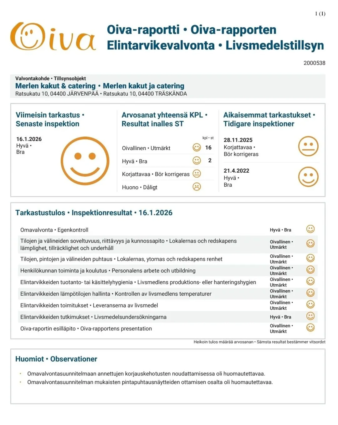 hyvästä tarjoilusta!