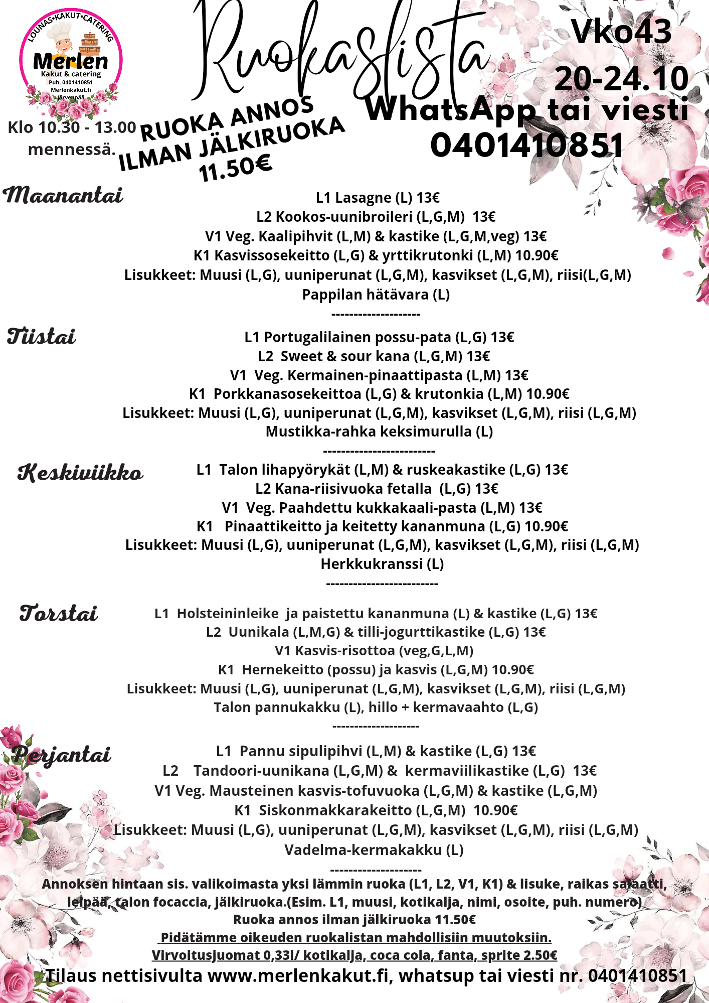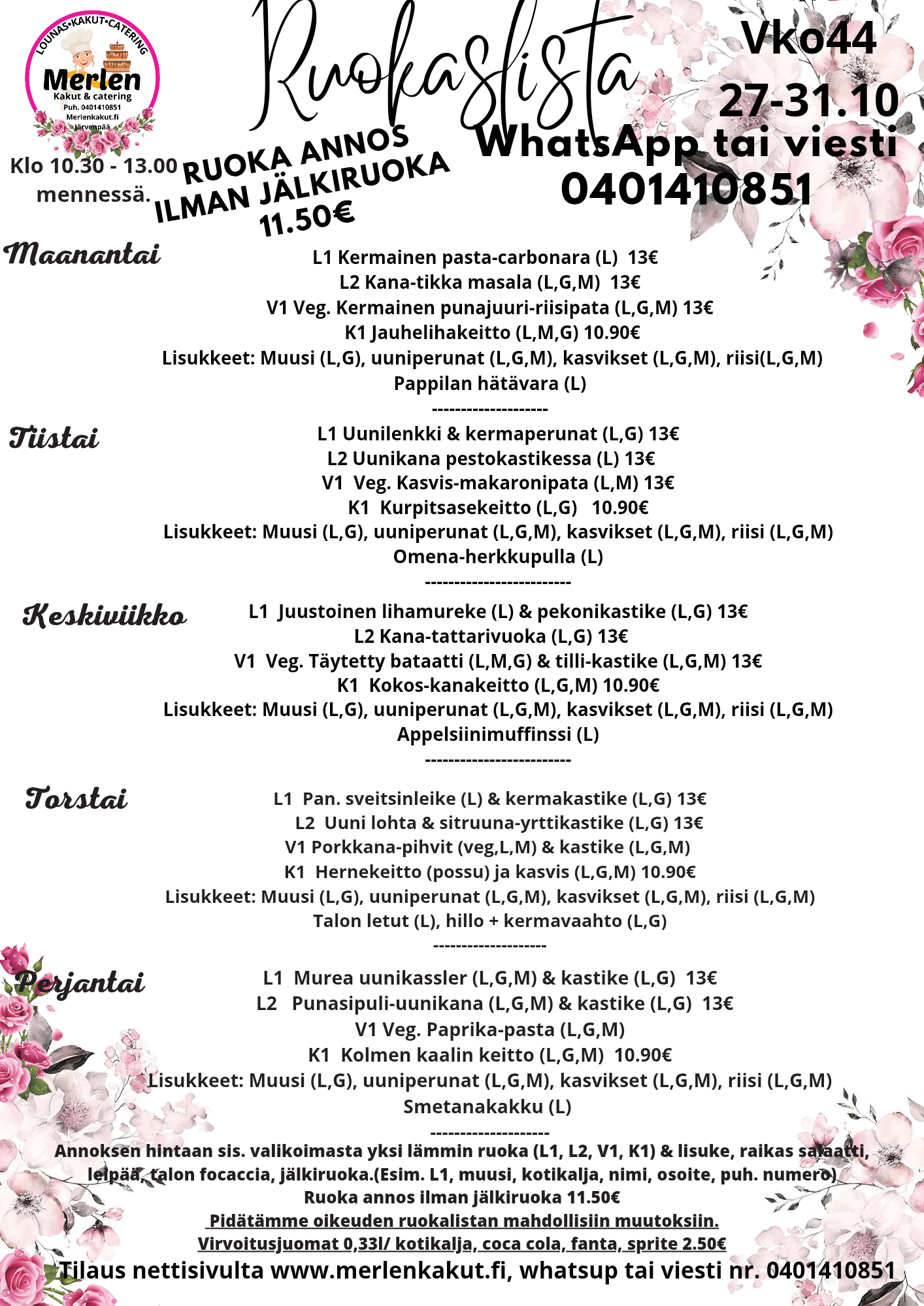 Teethän tilauksen viimeistään edellisenä päiväna klo 12 mennessä!